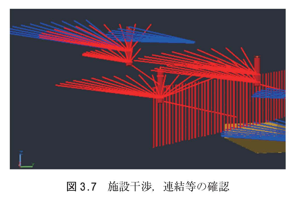 地すべり対策施設の配置(上)と施設干渉・連結等の確認