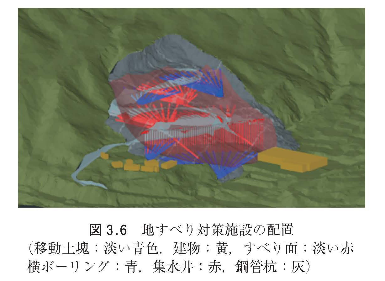 地すべり対策施設の配置(上)と施設干渉・連結等の確認